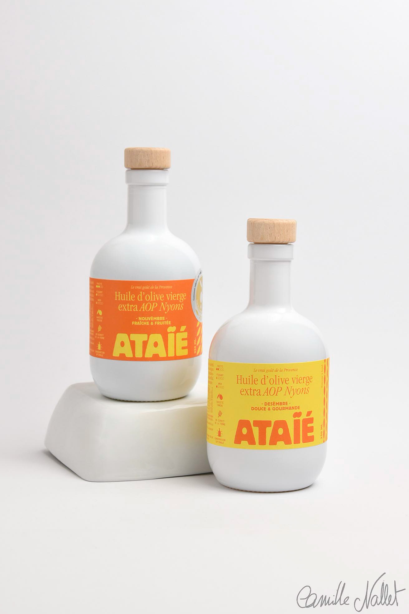 Huile d'olive fabriquée à partir de la variété Tanche cultivée en Drôme provençale à Nyons. À retrouver sur ataie.fr